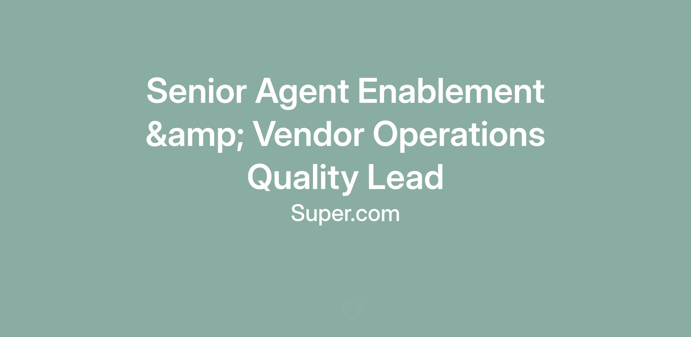 The Senior AEVO Quality Lead is a high-impact individual contributor (IC) role that reports directly to the Senior Manager, Agent Enablement & Vendor Operations. This role is responsible for evolving the Quality strategy across Super.com’s outsourced BPO network and internal stakeholders. You will lead quality calibration initiatives, own QA insights frameworks, and partner closely with vendors and internal AEVO Specialists to drive performance through data.