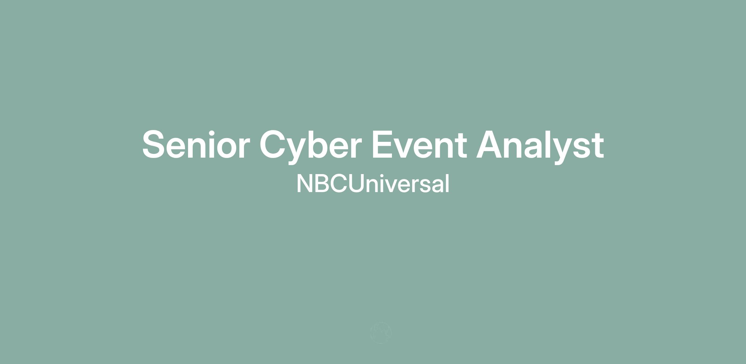 NBCUniversalβs Cyber Defense Operations team is responsible for providing cyber threat intelligence, event analysis, incident response and threat hunting for all areas of NBCUniversal in a highly collaborative, fast paced, and agile fashion. As a member of the Cyber Response team, a candidate can expect to utilize their technical expertise to assess, contain, and remediate cyber threats. The Senior Cyber Event Analyst is responsible for analysis, escalation and initial response actions of security events and alerts to incidents.