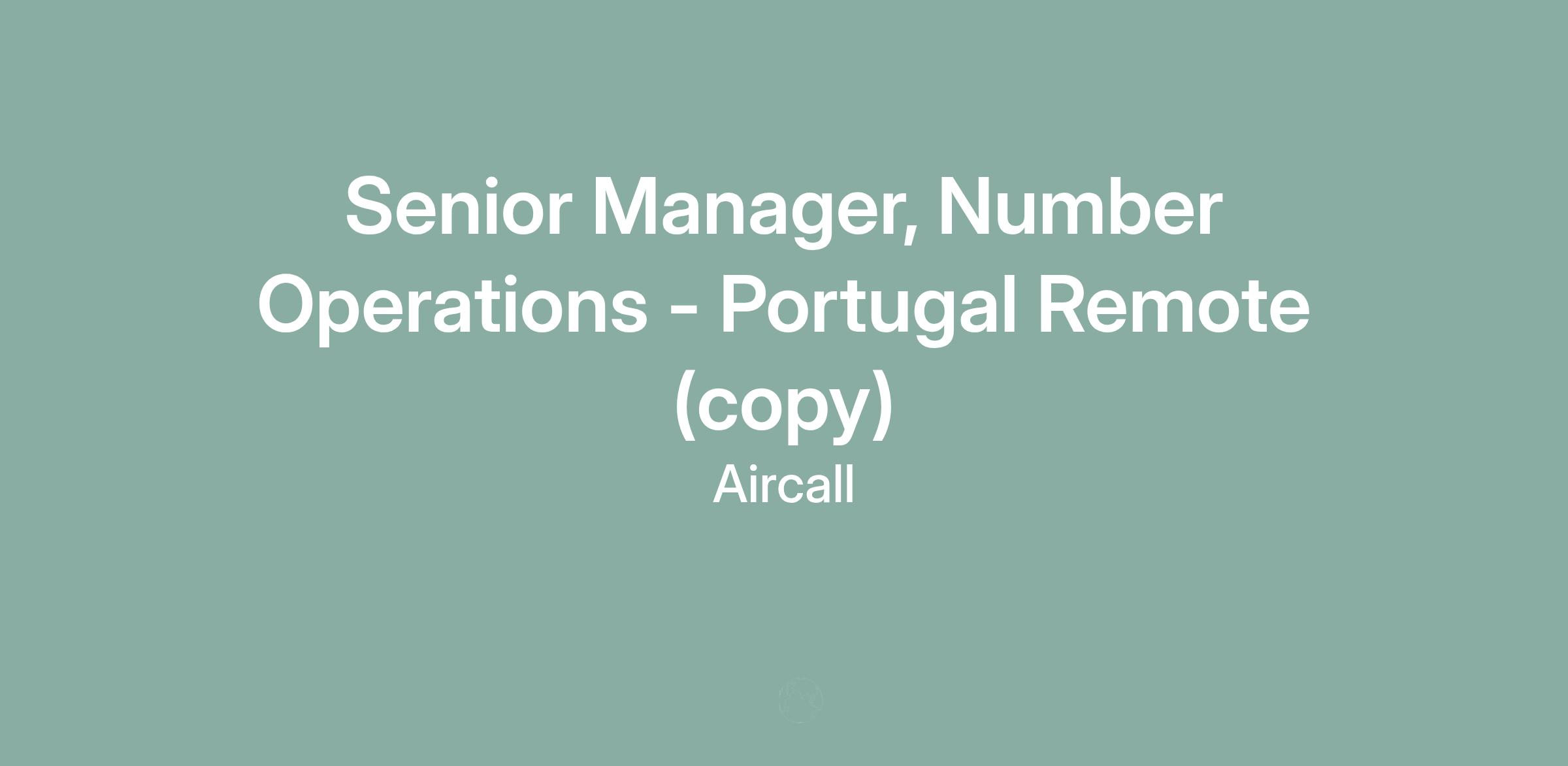 Reporting to the VP, Customer Support & Experience and being a permanent member of the Support Leadership staff, you will bring strong Number Operations expertise and views to influence the direction of Aircall’s number management strategy, and ensure that NumOps constraints, challenges, risks and opportunities are always surfaced, understood and addressed.
